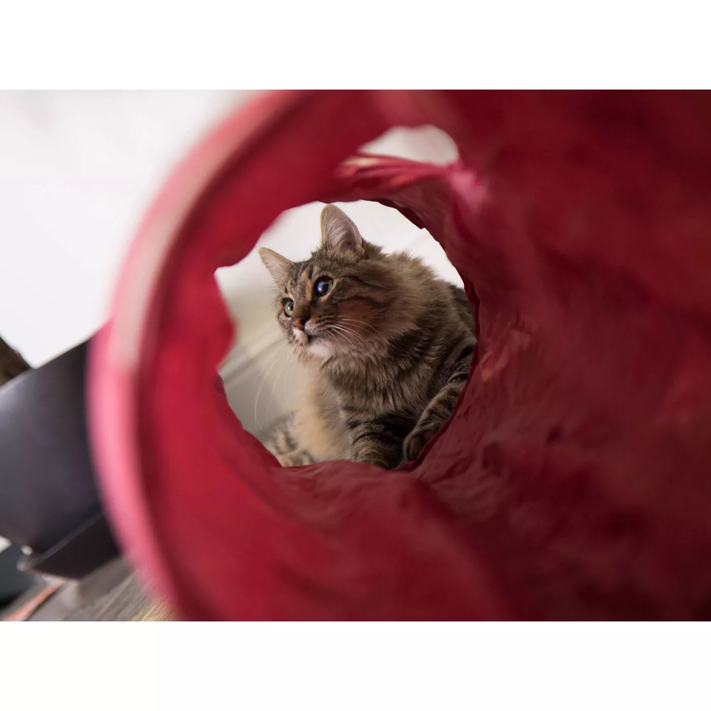 This is a collapsible tunnel toy that attracts cats with its alluring crackle sounds. Curious cats can't resist the mystery of this rustling, cracking chute and will love exploring and running through the tunnel of fun!